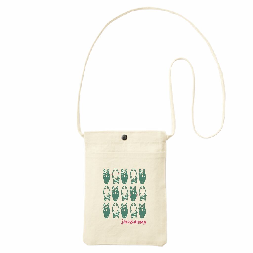 正面にポケットがついた顔柄デザインのミニサコッシュ